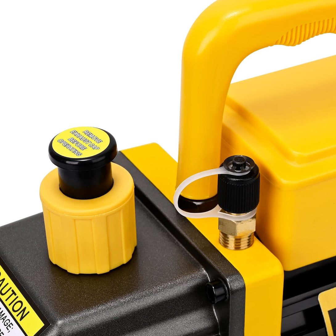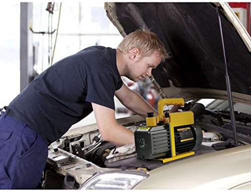 - Convenient To Operate: FavorCOOL single-stage rotary vane vacuum pump includes a sight glass and scale for easy monitoring of the pump's oil level and quality; The oil drain valve at the bottom ensures faster and more thorough emptying; The lightweight and sturdy handle keeps everything easily portable for transport or storage between jobs; and 1/4 inch ports allow fast and easy servicing of automotive and other low-tonnage R12, R22, R134a, R410a, and R502 systems