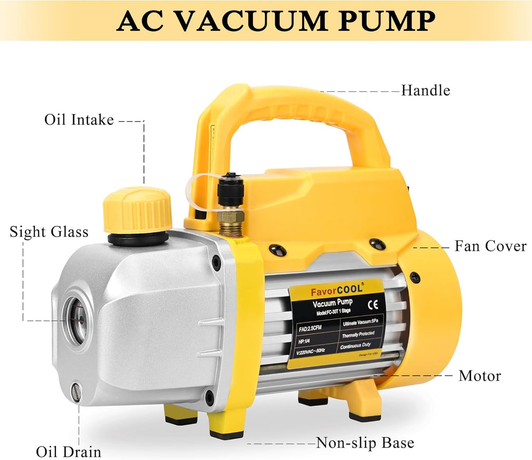 - Warm reminder----We value customer satisfaction and want to ensure they fully understand how to use our products. Remember, a vacuum pump is a device that uses various methods to create and maintain a vacuum in a confined space. Vacuum pumps often malfunction if not operated properly. Please read the user manual and the six common vacuum pump faults and solutions carefully, its strong 1-year warranty and FavorCOOL's friendly 24/7 customer service give you peace of mind.