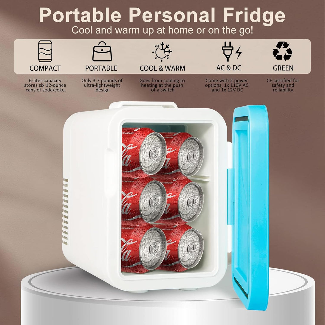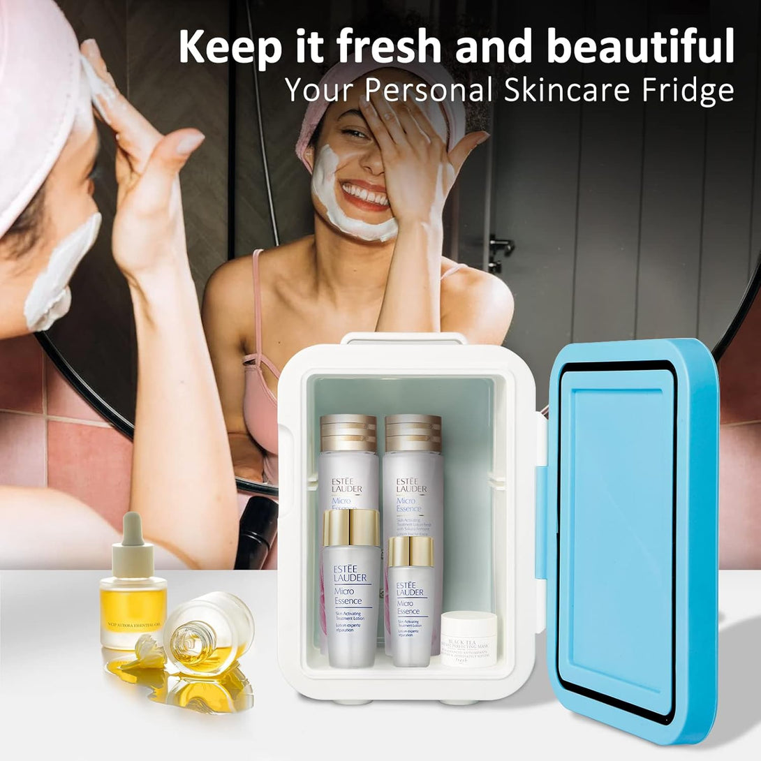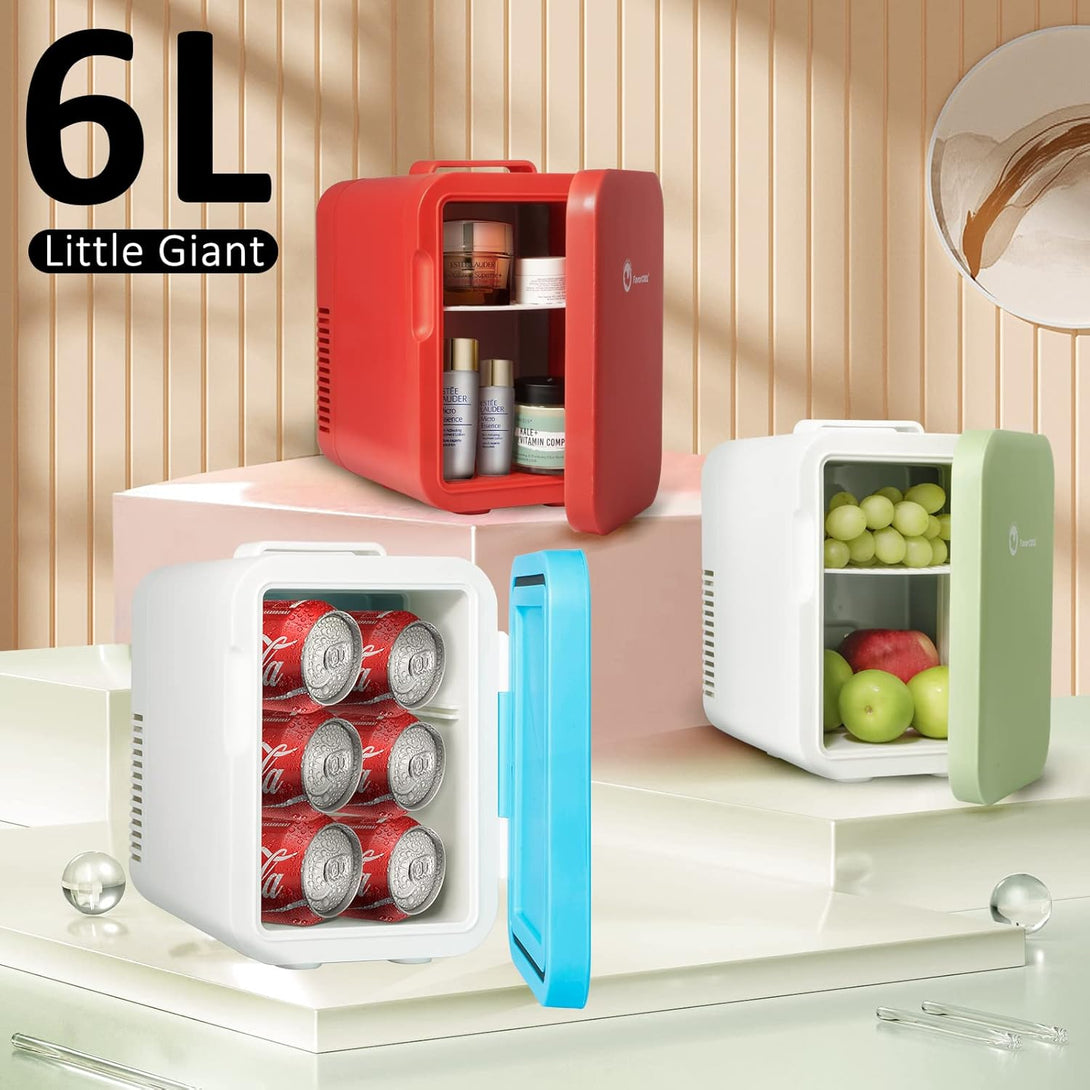 Mini Skincare Fridge, 6 Liter/6 Cans Small Refrigerator Cooler Warmer 110V AC/ 12V DC Personal Fridge for Bedroom, Beverage, Makeup