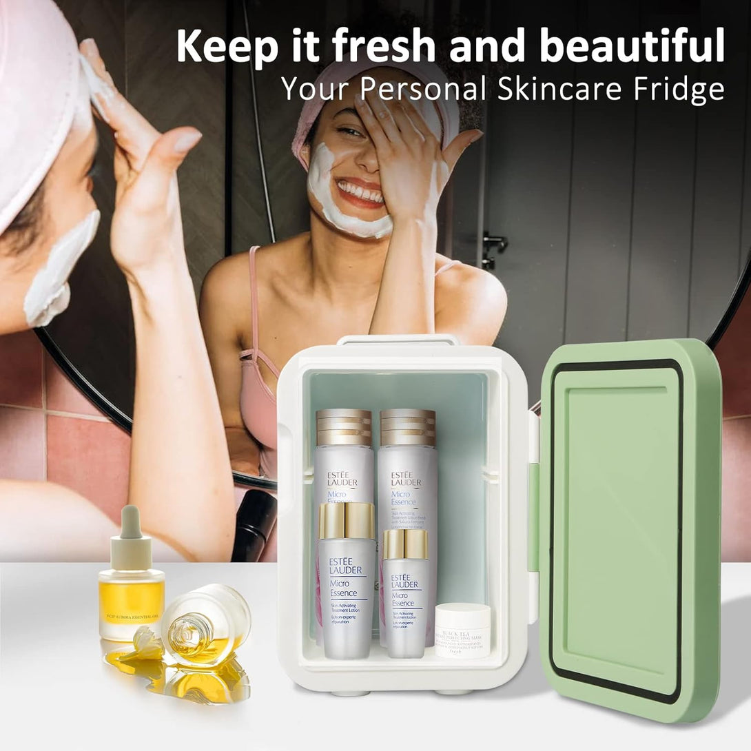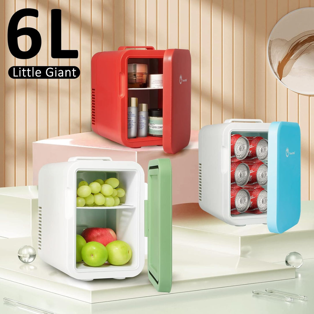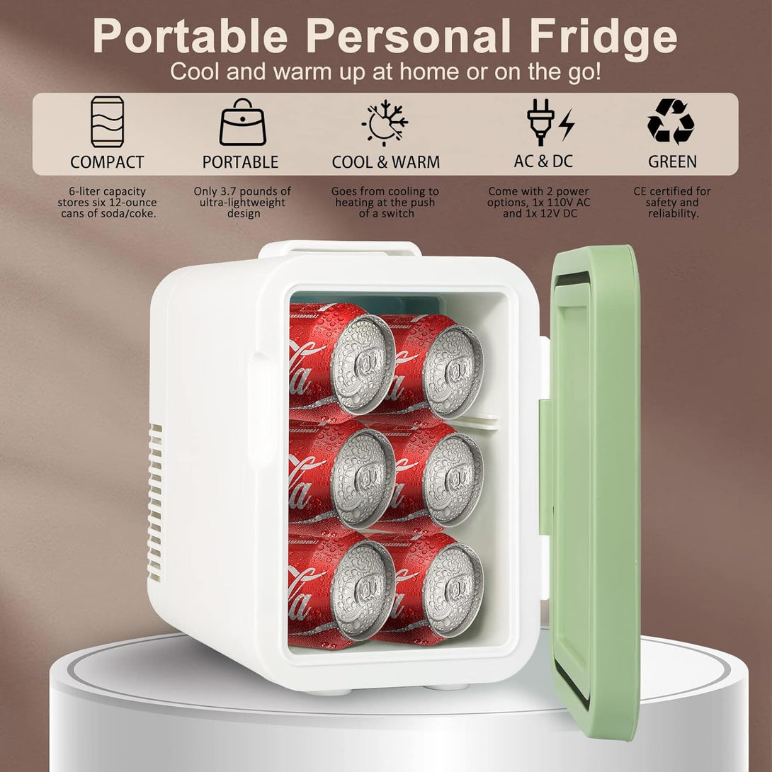 Mini Skincare Fridge, 6 Liter/6 Cans Small Refrigerator Cooler Warmer 110V AC/ 12V DC Personal Fridge for Bedroom, Beverage, Makeup