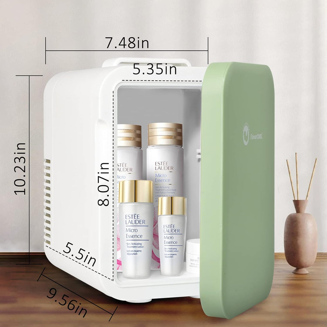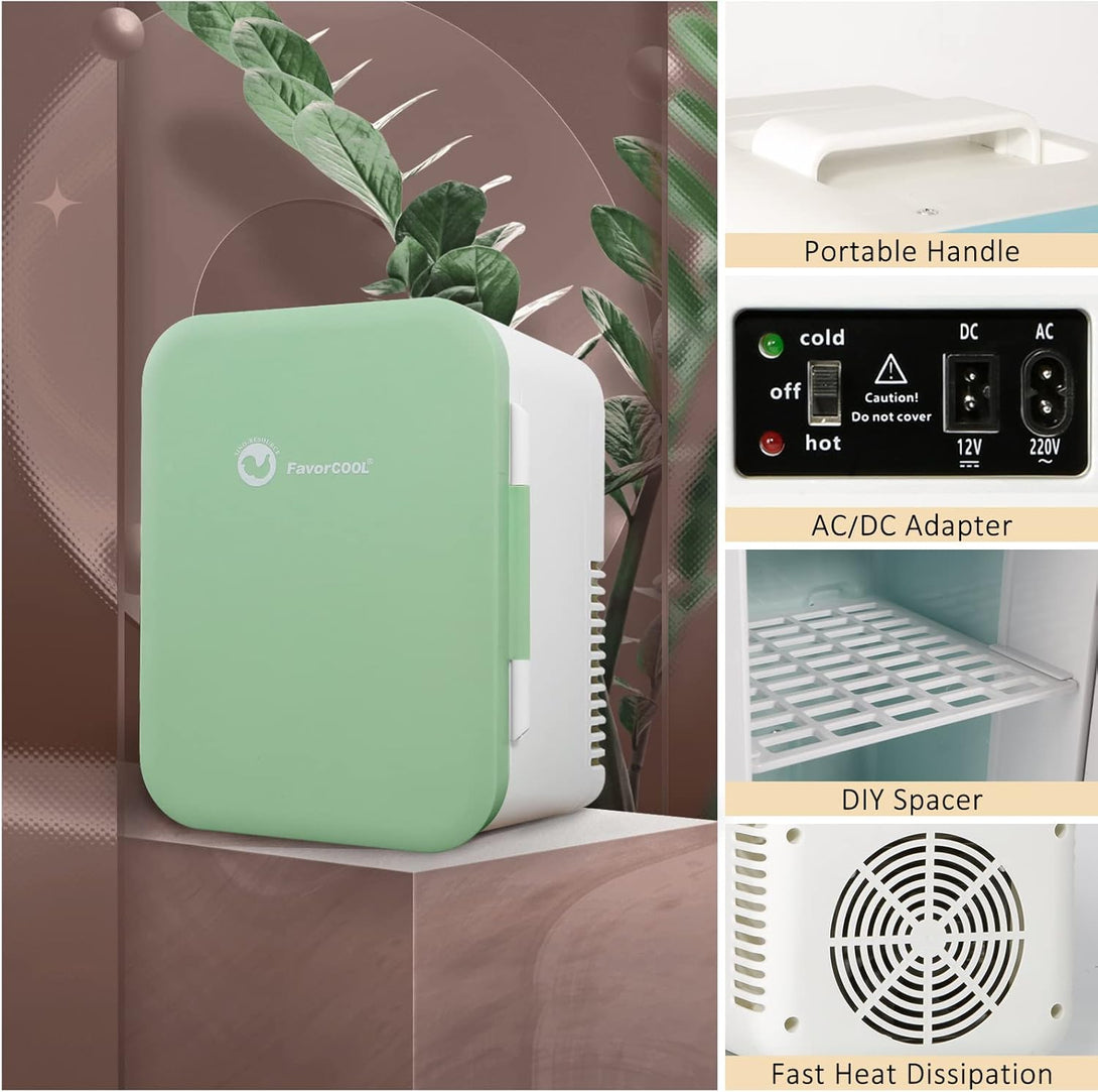 - VERSATILE & STYLISH: The FavorCOOL Mini Refrigerator is perfect for storing and keeping beverages, skincare, cosmetics, makeup, masks, and anything that requires cooling or warmth intact. Its smart size and flexible power source make it ideal for use in the bedroom, office, bathroom, or car.