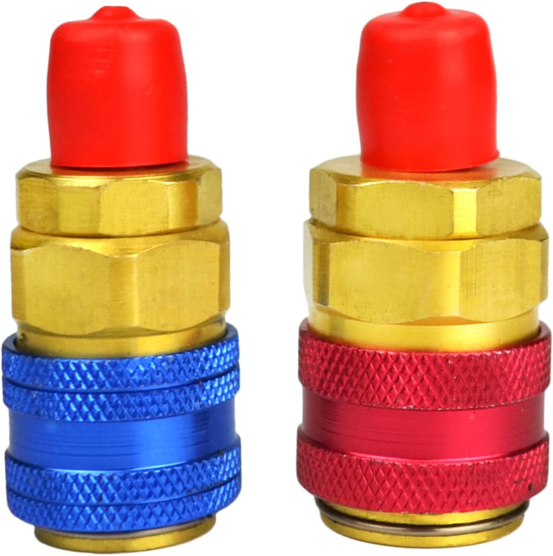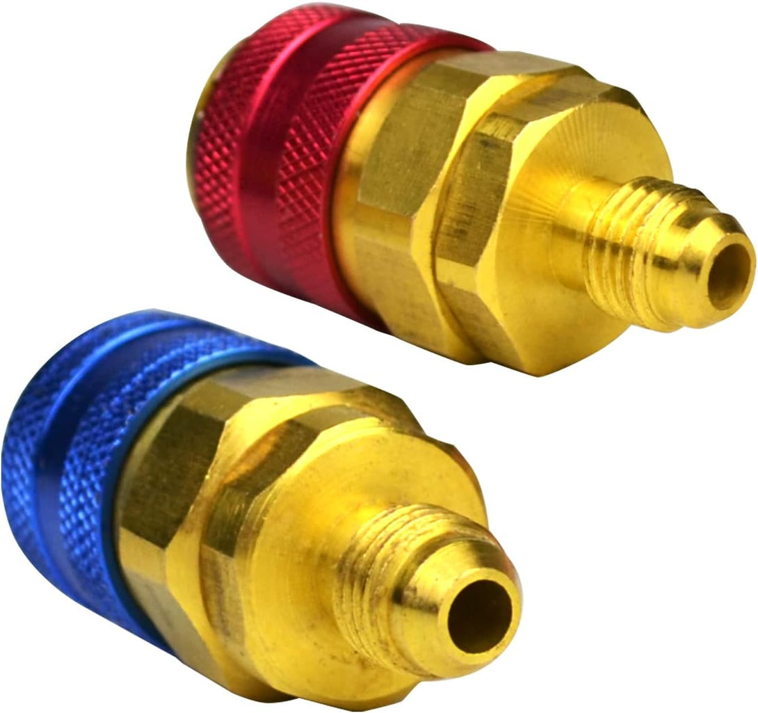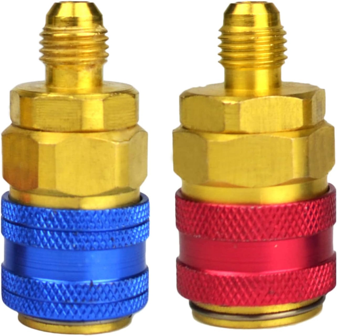 R134a Quick Coupler Adapters, Brass Freon Manifold Gauge Adapters and Hose Fittings Valve Core HP and LP Connectors for R134a Car AC System, 1/4" SAE Flares, 2pcs