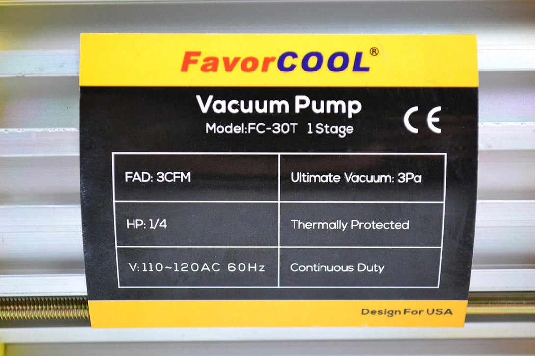 FavorCOOL single-stage 3 CFM HVAC Vacuum Pump in a compact and easily portable package with superior heat dissipation and efficiency to serve you well for years to come!
